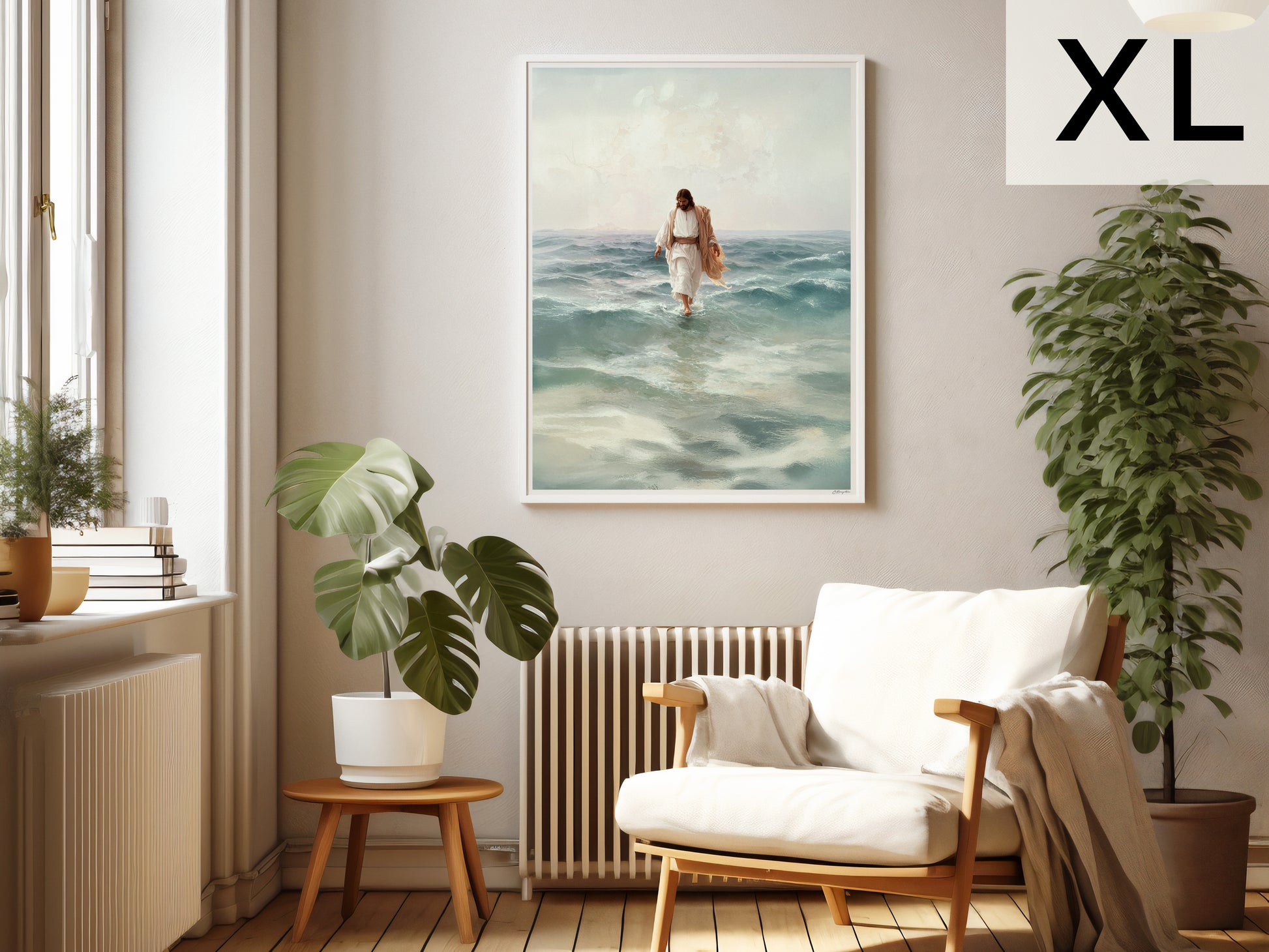 I think we all have seasons when the water feels too deep and the winds too strong, when we feel like Peter, unsure if we can keep going. This painting is for those moments. It helps us see that even if our faith wavers, He never does. He comes toward us. He reaches out. He steadies our steps. And He says again and again: Be not afraid.