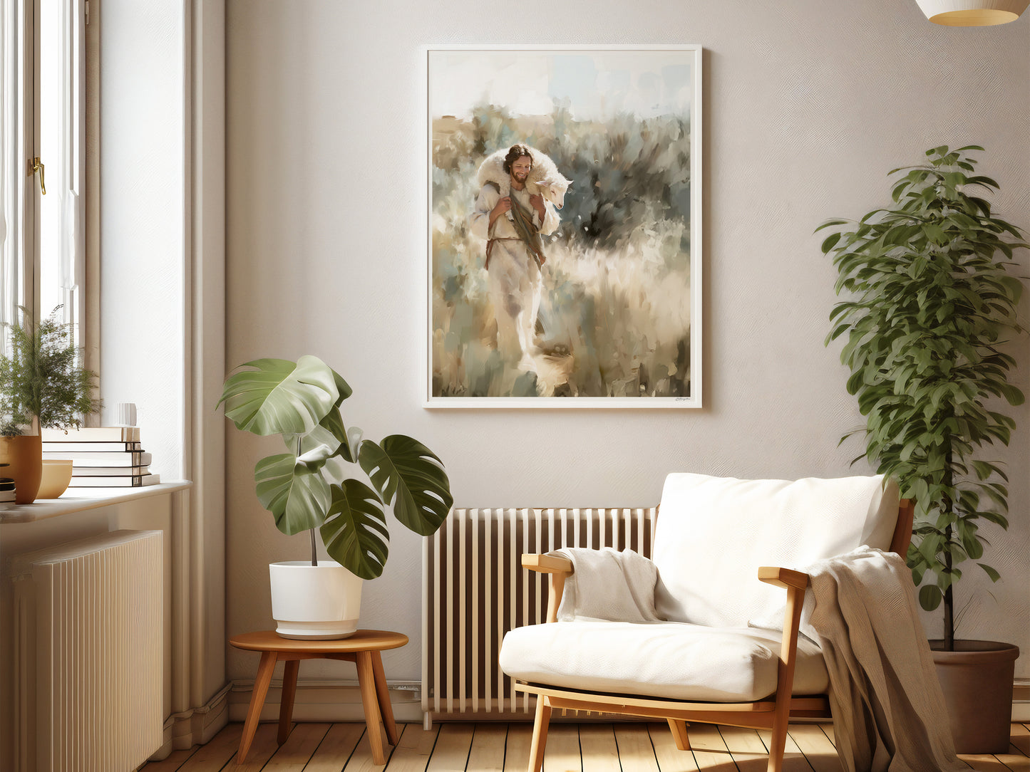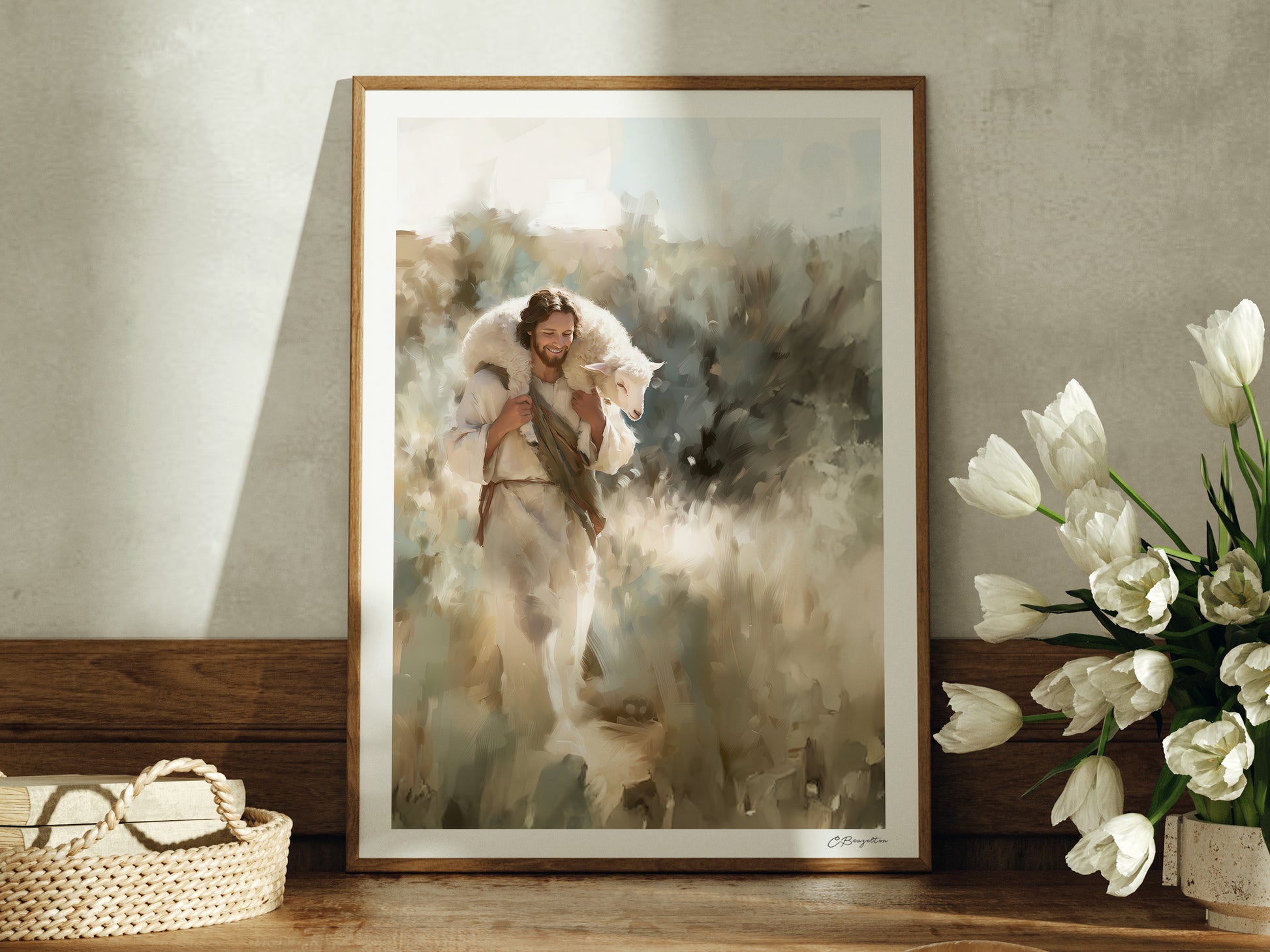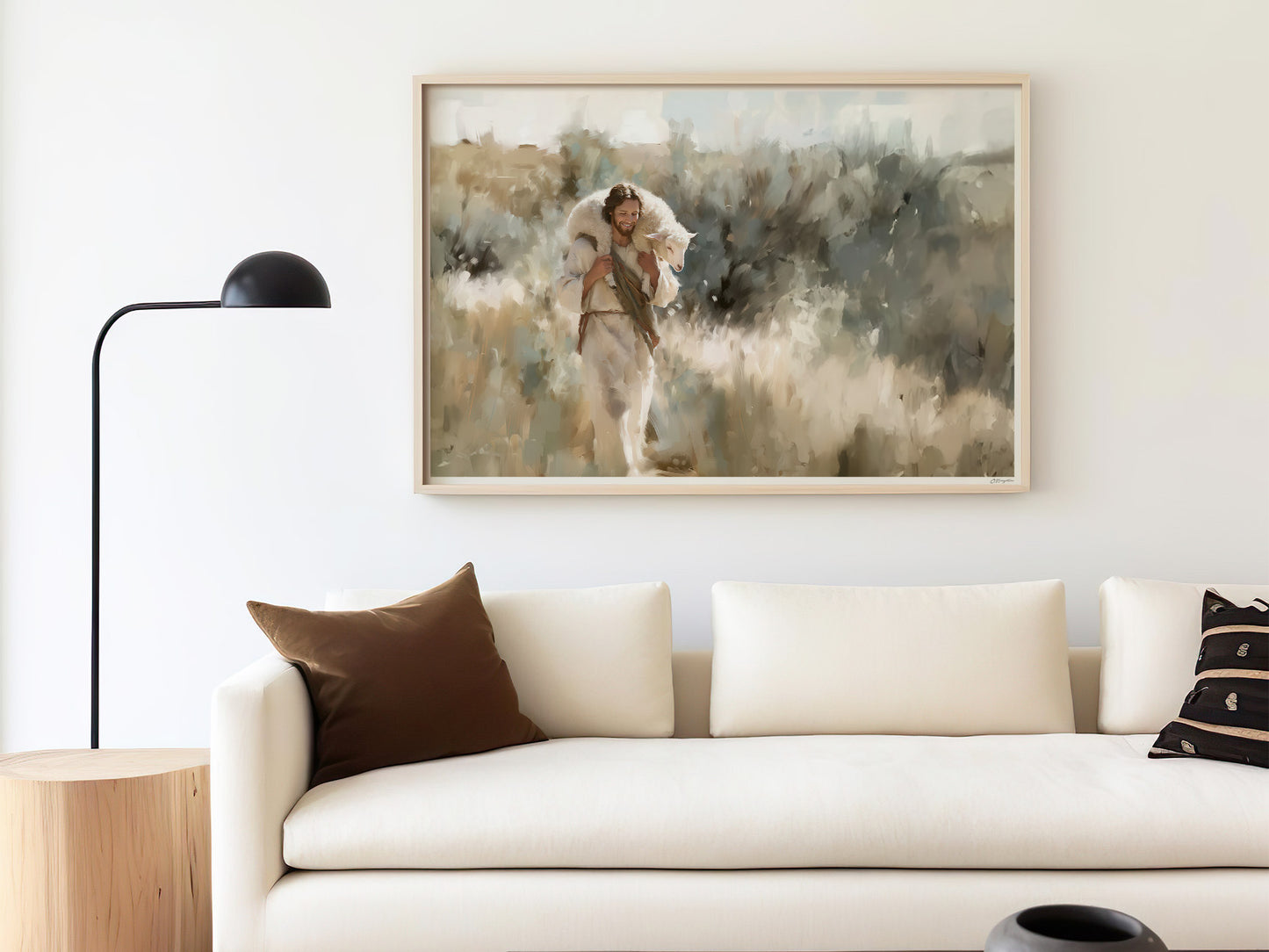"Carried Home" was inspired by the words of Jesus in Luke 15:3–7. In this story, The Savior teaches us that heaven rejoices over every soul that returns to Him. I wanted this piece to show that same joy. It's found in the smile on the Savior’s face, the peace of the lamb resting on His shoulders, and the light that comes when even one of us finds our way back home.