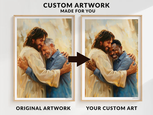 Here you’ll find my custom and personalized artwork options, designed to help you make an existing artwork feel more like your story while keeping the spirit, message, and composition of the original piece. Whether you’re hoping to adjust a figure’s features, hair, skin tone, clothing, or create a more personal likeness, these options are made to bring the message of the Savior closer to home.