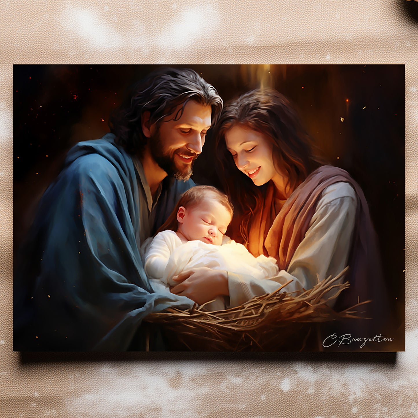 Espero que esta pintura sirva como una adición significativa a su decoración navideña, trayendo la calidez y la alegría de esa noche bendita a su hogar. Que le recuerde a usted y a sus seres queridos el amor eterno y la esperanza que el nacimiento de Jesús trae a nuestras vidas e inspire reflexiones sobre la verdadera esencia de la Navidad.