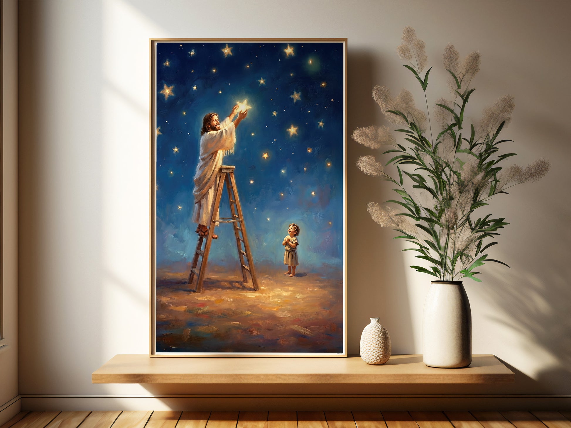 Creation has a way of preaching without words. Think of those moments when you step outside and the sky is full of stars, and everything in you gets quiet, not from sadness, but from awe. I wanted this painting to feel like that. The world is not random, and your life is not an accident. You are a child of God with divine worth, and the Light of Christ can lead you when you feel small in a big world.