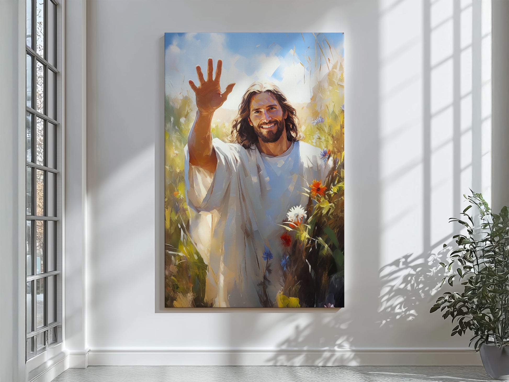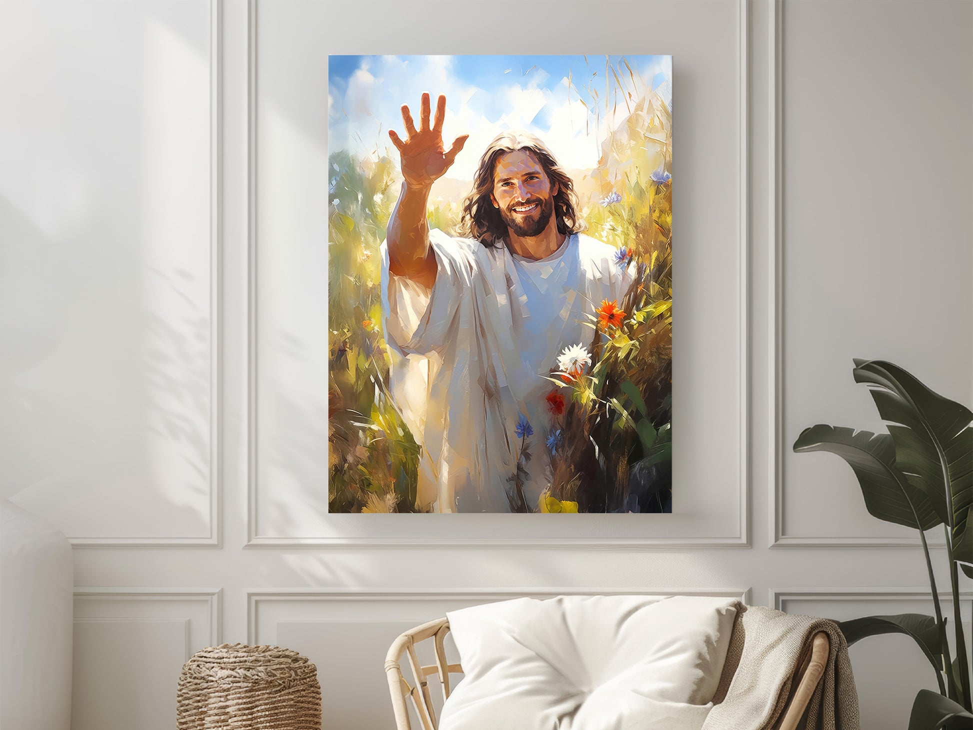 By treating your canvas with the same love and care that went into its creation, you can enjoy this piece of Christ-centered art as a lasting symbol of your faith and values.